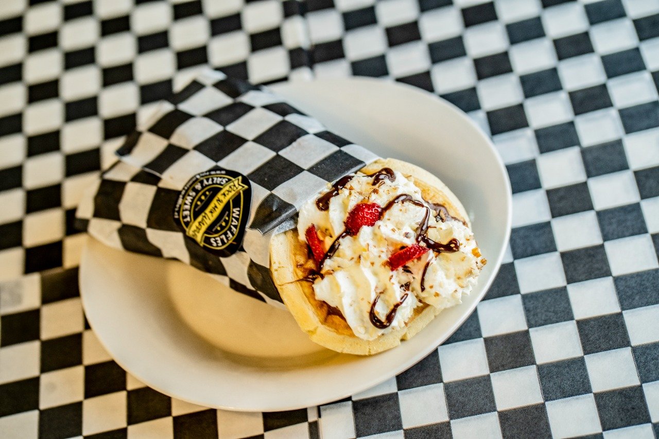 Frutilla, crema chantilly, salsa de chocolate, frutos secos (almendra o nuez). manjar y/o nutella.